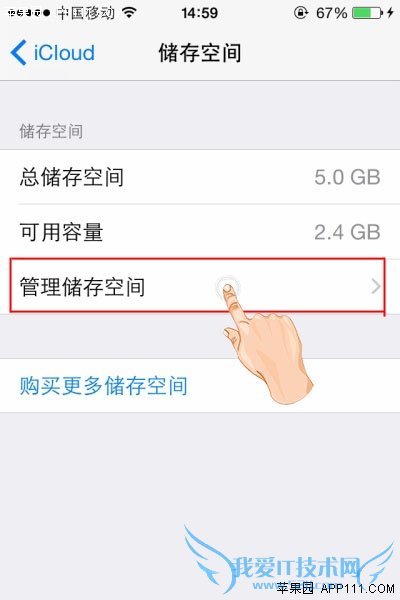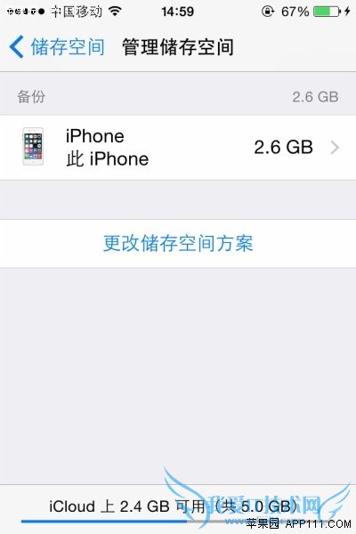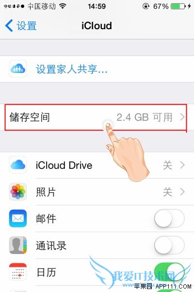 第二步,备份后,在iCloud页面,“存储空间”选项可以看到可用的备份空间。点击进入“存储空间”。