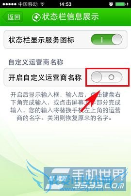 3)在“运营商名称”后面输入自己想修改的文字,修改完后无需重启即时显示。
