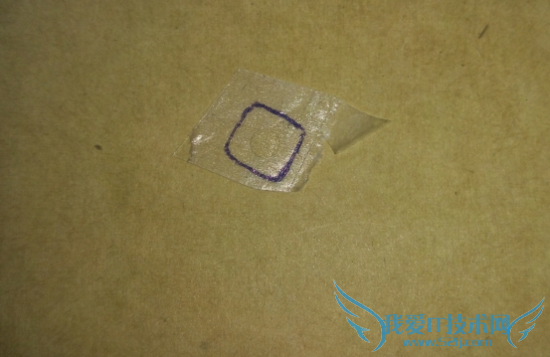 我们知道,圆珠笔在塑料上是画不出痕迹的,所以我们可以考虑用一点双面胶覆盖到上面,双面胶是纸的,而且透明,方便下面画记号。