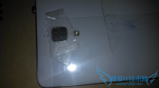 做好前期准备后,我们就可以着手操作了,首先拿出手机放好,然后把保护膜摄像头开孔对准手机的摄像头,用胶带固定好,一定要分中,不然会严重影响拍照成像效果。
