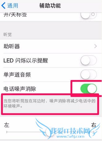 打开设置——通用——辅助功能,找到电话噪声清除,关闭之后如果声音大了就是降噪的作用。