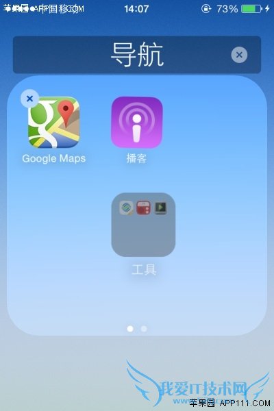 第二步,将主屏幕上另两个App图标用同样的方法,创建第二个文件夹。当这个文件夹产生创建动画时,快速将第一个文件夹拖入到其中,即可成功创建嵌套文件夹。