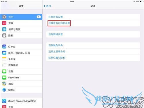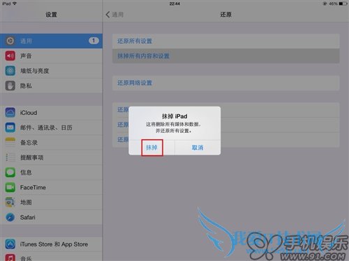 第三步:然后选择“抹掉所有内容和设置”;