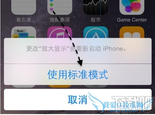 4:随后再点击底部弹出的“使用标准模式”选项,然后会重新启动手机来启用新的显示模式