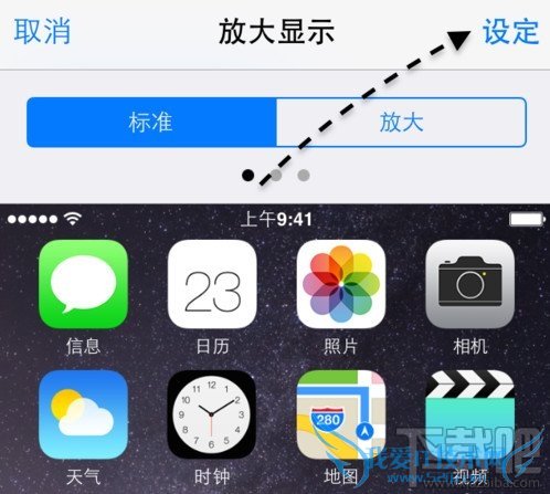 3:当前是采用的放大模式,即把原来的应用图标在桌面上等比放大。如果你想在主屏上获得更多的摆放空间,可以选择“标准模式”来显示,然后点击“设定”按钮
