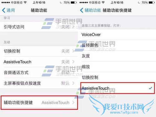 2)选择【辅助功能快捷键】,将【AssistiveTouch】功能勾选。(如下图)