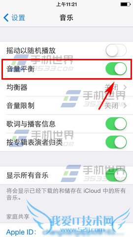 打开iPhone6Plus的【设置】,点击进入【音乐】,然后把【音量平衡】选项打开即可。