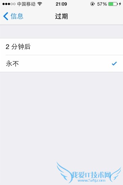 第二步,在过期选项页面,选择“永不”即可保留信息了。