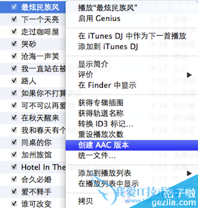 第五步:再次右键点击这首歌曲,选择“创建ACC版本”,iTunes会生成一首歌曲,在原来歌曲的下面。