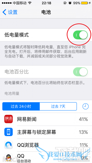 2、开启【低电量模式】,iPhone6s节能模式激活