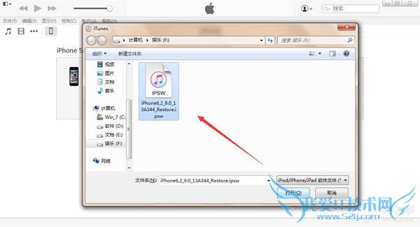 4、iTunes会弹出对话窗--请选择已经下载好的固件--点击更新--等待iTunes运行。
