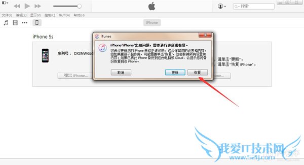 2、iTunes会自动检测到一台等待恢复的设备,按住键盘上的shift键+iTunes上的“恢复”,选择固件再恢复: