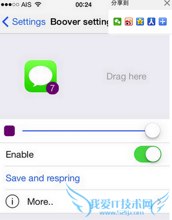 打开「position and size」,下方两个选择分别是角标大小,角标形状(由方形到圆形慢慢过渡)。同样记得「Save and Respring」。