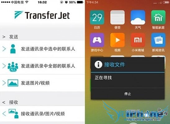 我使用 iPhone 5s 和三星 Galaxy S6 edge 进行测试。文章开头的场景,只需要 iPhone 打开 TransferJet 应用,选择「发送图片/视频」,找到相应文件,选择「发送」;在三星手机上打开应用直接接收即可。(初次连接需配对,过程很简单,多点击一次确定而已)
