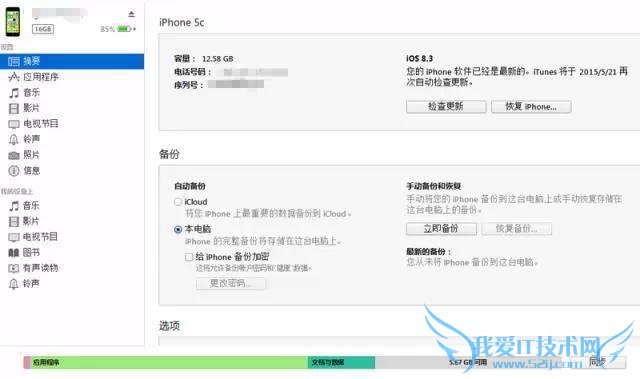 2、连接电脑,电脑会自动识别你iPhone(前提是你已经安装有iTunes软件),进入 iTunes后会看到如上图的界面,此时点击“备份”,开始备份你手机数据。