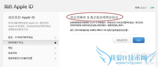 4. 进入两步验证之后,你将会遇到等待 3 天之后才能开启两步验证的情况。注意:小编的操作到这里中断,以下部分为锋友 mrtyzq 提供的截图。