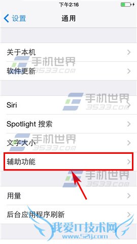 1)选择iPhone6Plus【设置】里面的【通用】项,然后点击【辅助功能】。