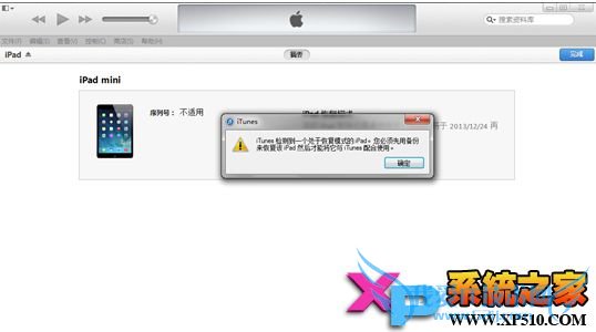 第二步:iTunes会自动检测到一台等待恢复的设备,点击确定。