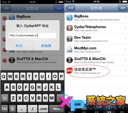 输入Cydia源地址:http://cydia.kuaiapp.cn,点击添加源;所有文件安装完成后点击“回到Cydia”