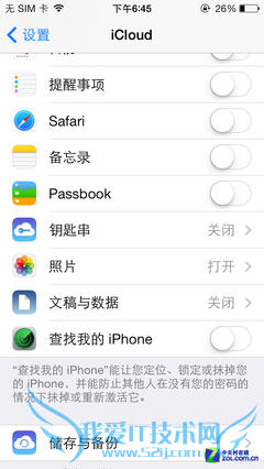 除了辅助功能选项当中的细节,如果大家对于将手机应用数据随时上传到云中保存认为没有必要,那么iCloud选项中的“文稿与数据”也完全可以选择关闭。