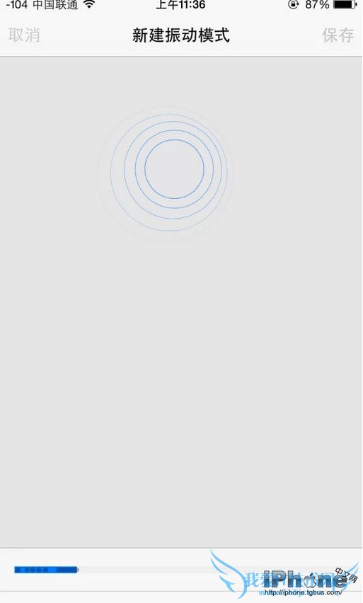 在这里我们就是通过触摸屏幕中央区域来定义如何振动,当手指按下即开始计时,最长可以录制十秒,于是我们就能得到个性化的振动提醒方式了。