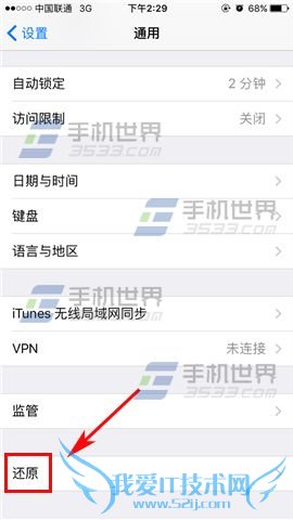 1)首先我们先打开【设置】,然后找到【通用】,打开后再点击【还原】。(如下图)