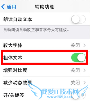 要设置加粗很简单,打开 设置–>通用–>辅助功能,向下滑动找到“粗体文字”,将右侧的开关按钮打开,