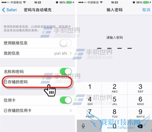 步骤2:点击“已存储的密码”一项进入,随后会提示输入锁屏密码。