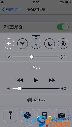 iOS 7其中一特点就是在控制中心和通知中心中采用了高斯模糊的背景,虽然这可能看起来很花哨,但是也会分散一些人的注意力。对于有视觉障碍的人来说,在使用设备的过程中会有很多困难。在iOS 7.1的更新中,就增加了降低透明度的开关,让我们在浏览通知中心、选择控制中心的开关上都有很大的提高。