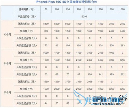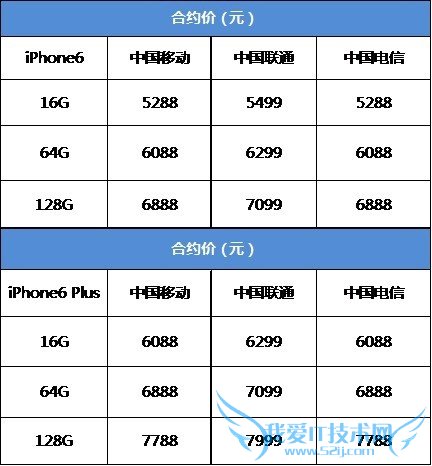 3、三大运营商iPhone6合约机计划对比,联通合约价略高,移动更划算