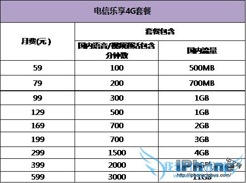 中国电信:合约机分为24和36个月两种期限,档位从59元起,直至999元/月,入网门槛相对较低。
