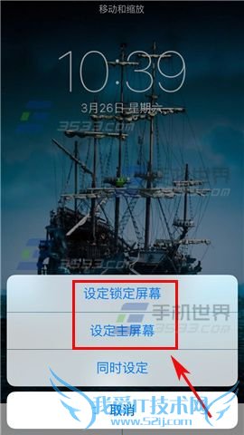 5)打开壁纸调整好大小后点击右下角的【设定】,最后即可根据自己的情况设置为【锁屏壁纸】或【桌面壁纸】了,还可以点击【同时设定】将锁屏壁纸和桌面壁纸都设为同一张哟!(如下图)