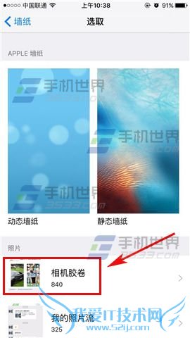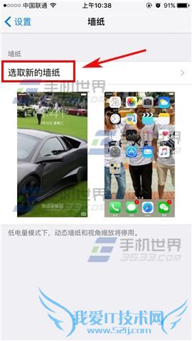 4)打开后我们再点击【选取新的墙纸】,然后点击【照片】选择之前保存的壁纸。(如下图)