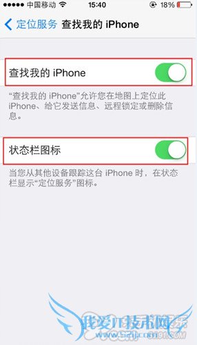 5、iCloud下面最后一项是查找我的iPhone 请打开,现在Activation Lock功能就打开了。下面再来说说如何使用Activation Lock。