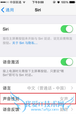 4、点击就可以切换 Siri 的声音了,切换后返回就可以了。