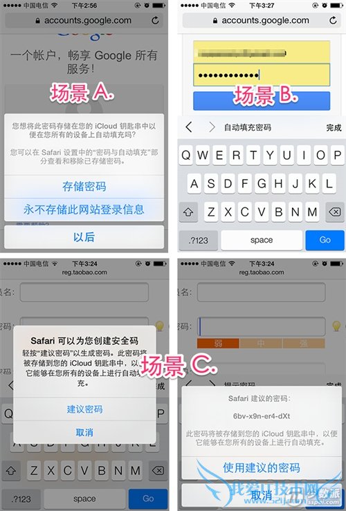 在我们打开钥匙串服务后,并不能直观感受到它的存在。没错,苹果非常完美地将钥匙串融合进 Safari 浏览器内,我们只有在网页进行登录注册操作时才会看到它。以下给出三种常见的场景: