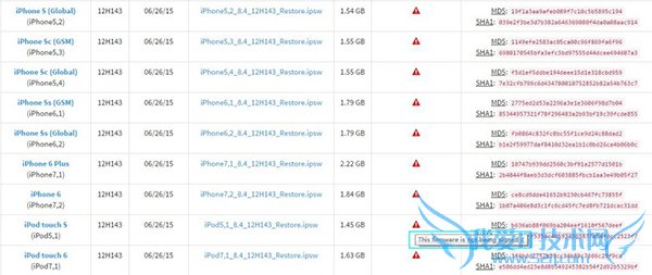 今天有不少 iOS 8.4.1 用户反馈,现在已经不能降级至 iOS 8.4 了;而从 IPSW.me 网站也能看到,官方已不再支持 iOS 8.4 固件验证,所以想要越狱的用户现在千万别升级系统,iOS 8.4.1 及 iOS 9 用户只能等待未来的破解了。