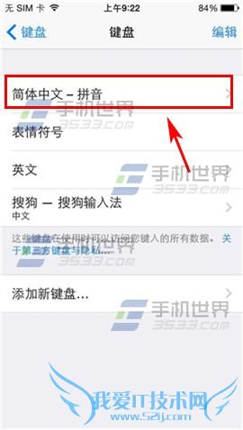 3)在键盘界面选择【简体中午-拼音】,选择【九宫格】输入即可。(如下图)