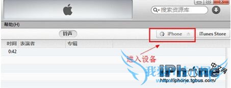 把iphone手机通过USB连接上电脑,在itunes选择设备。