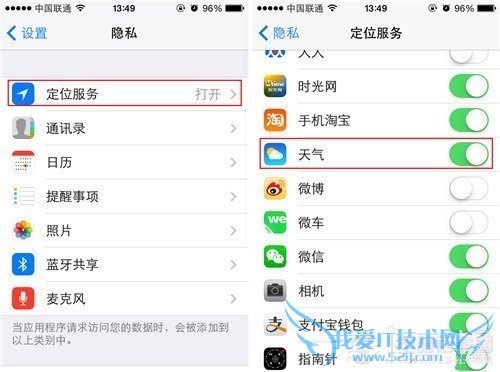 第二步:进入之后我们要选择“定位服务”选项,之后向下滑动菜单,找到“天气”选项并开启该功能。