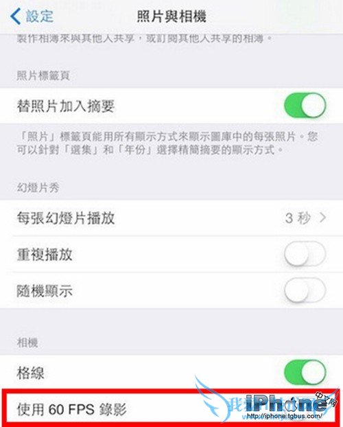 拉到最下面的选项,就会看到一个功能名为“使用60FPS录像”的开关,启动它。