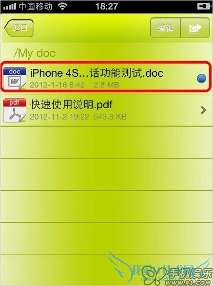 iOS属于封闭系统,文档交互功能也都需要安装第三方的应用程序和iTunes配合支持。本文以iPhone中已安装过“手机U盘OrganiDoc”程序为例:
