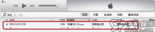 b) 同步结束后可以在iTunes资料库的音乐中找到“语音备忘录”专辑,