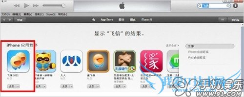 a) 在iTunes上点击右上角的iTunes Store查找应用或输入应用名称搜索。