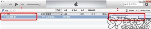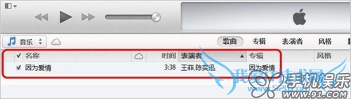 e) 选中“因为爱情”,直接拖拽至右侧边iOS设备中既可自动同步。
