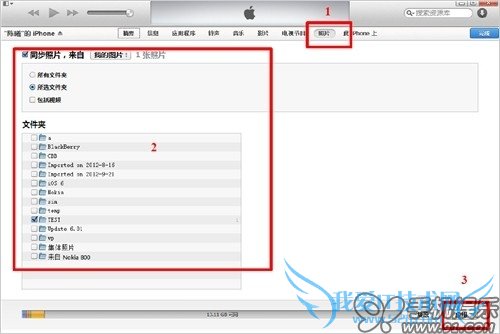 b) 除了同步PC中我的图片里的照片外,iTunes也允许选择其他文件夹中的照片;