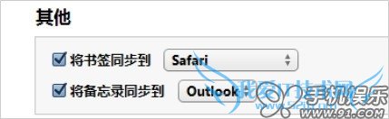 b) iTunes同步“其他”支持多渠道数据,如:书签同步支持Safair与IE浏览器,备忘录支持与Outlook中的便签同步。具体支持数据来源以iTunes支持及PC内安装的应用实际情况为准。