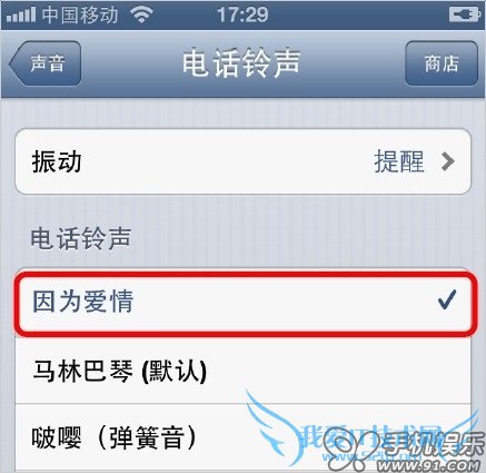 8) iOS设备(iOS 6系统)的设置-声音-电话铃声中可以找到刚才同步进去的铃声。
