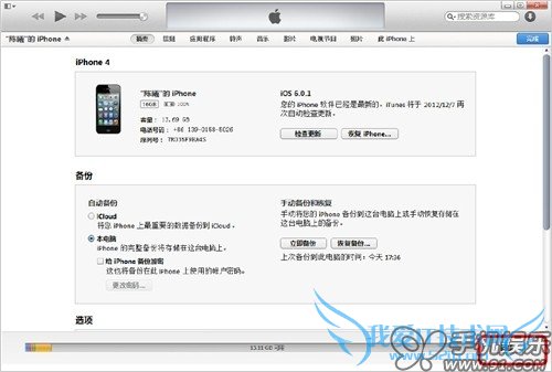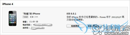a) 将iOS连接iTunes, 如果官方已推出新版本,iTunes会弹出升级提示,根据提示进行操作即可,也可以手机点击“检查更新”检索最新版本的固件。此功能只能针对未越狱的iOS设备有效,升级完成后系统数据不会丢失。(如果iOS设备之前未在这台PC上进行过同步,则会要求Apple ID授权,否则将抹去所有数据。建议在之前同步过的同一台PC上操作。)