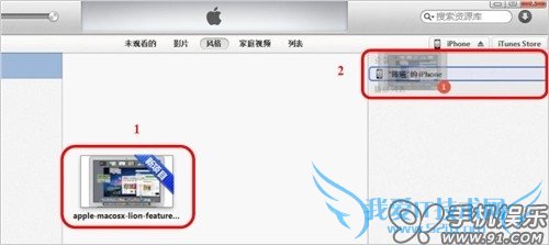 d) 选中影片文件后,直接拖拽至右侧边iOS设备中既可自动同步。